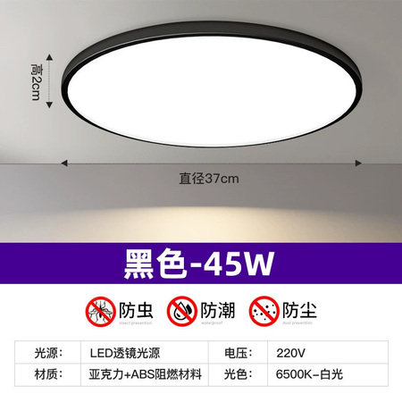 三防吸顶灯简约led卧室灯防潮防虫圆形阳台灯·45W